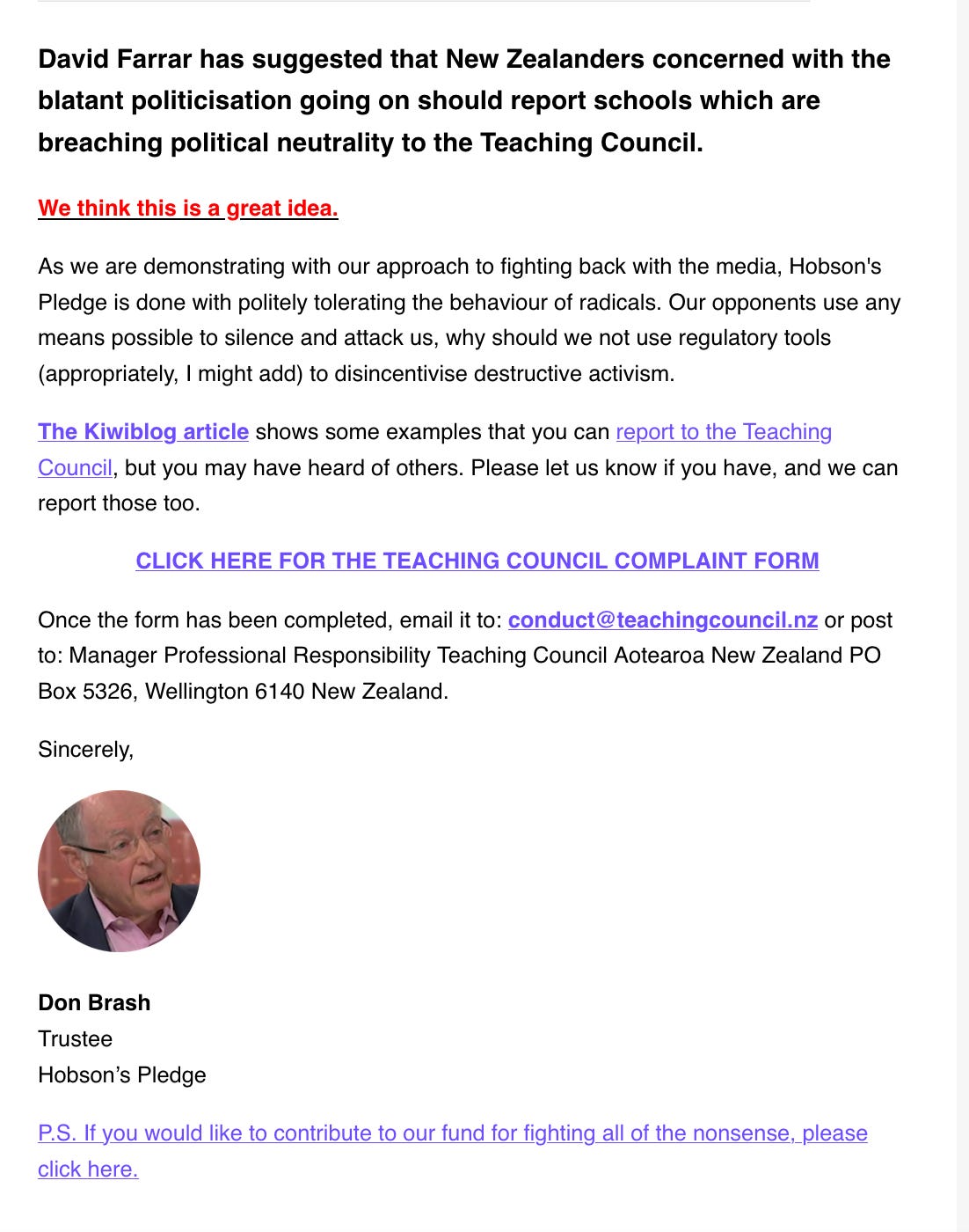 Sent to me with thanks last week (M) were multiple communications from the conjoined circus of David Farrar, Don Brash, straight back to their close ally David Seymour.