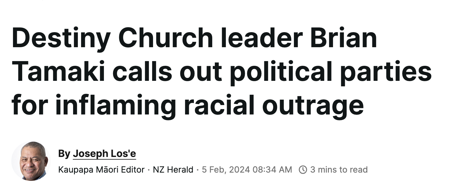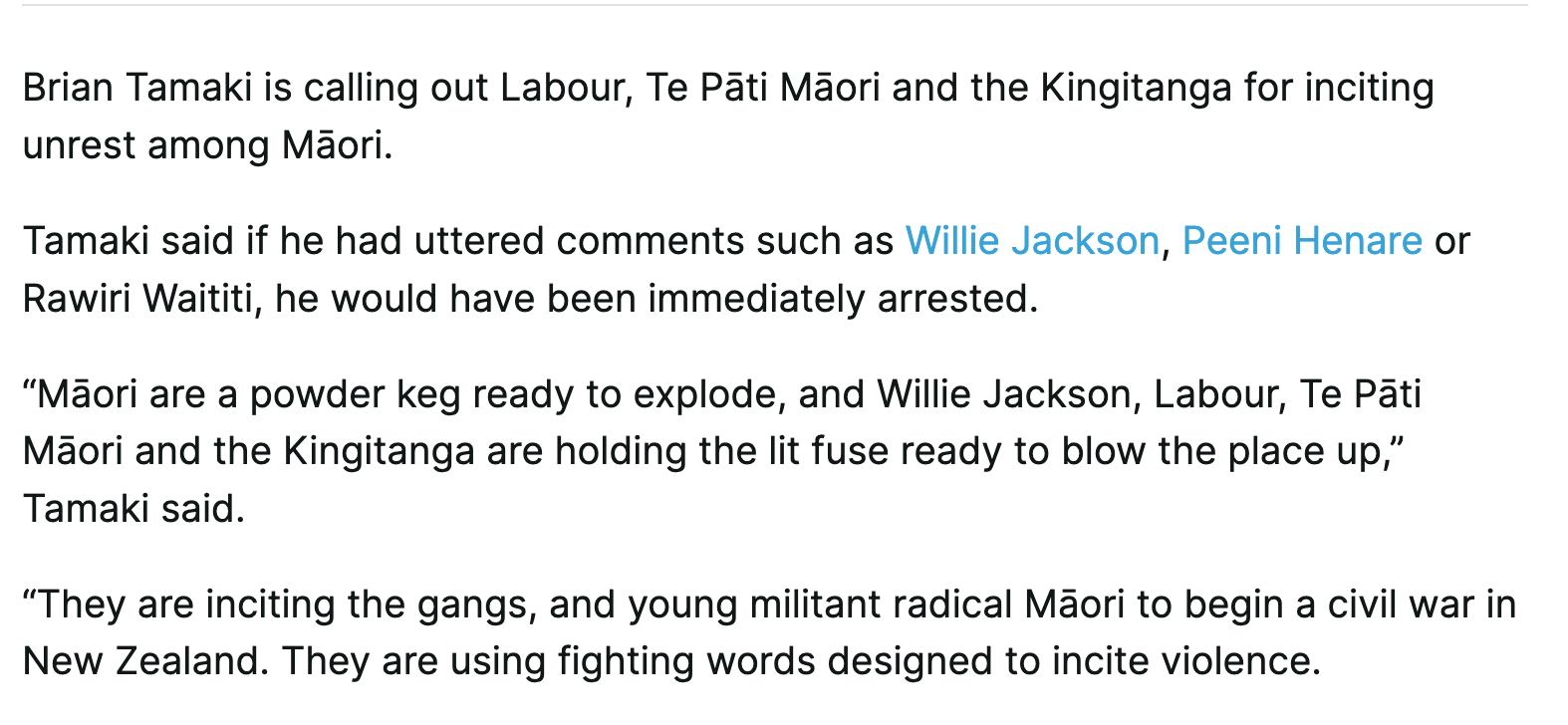 NZME also appear happy to lead articles with Brian Tamaki quotes attacking Te Pāti Māori and Labour.