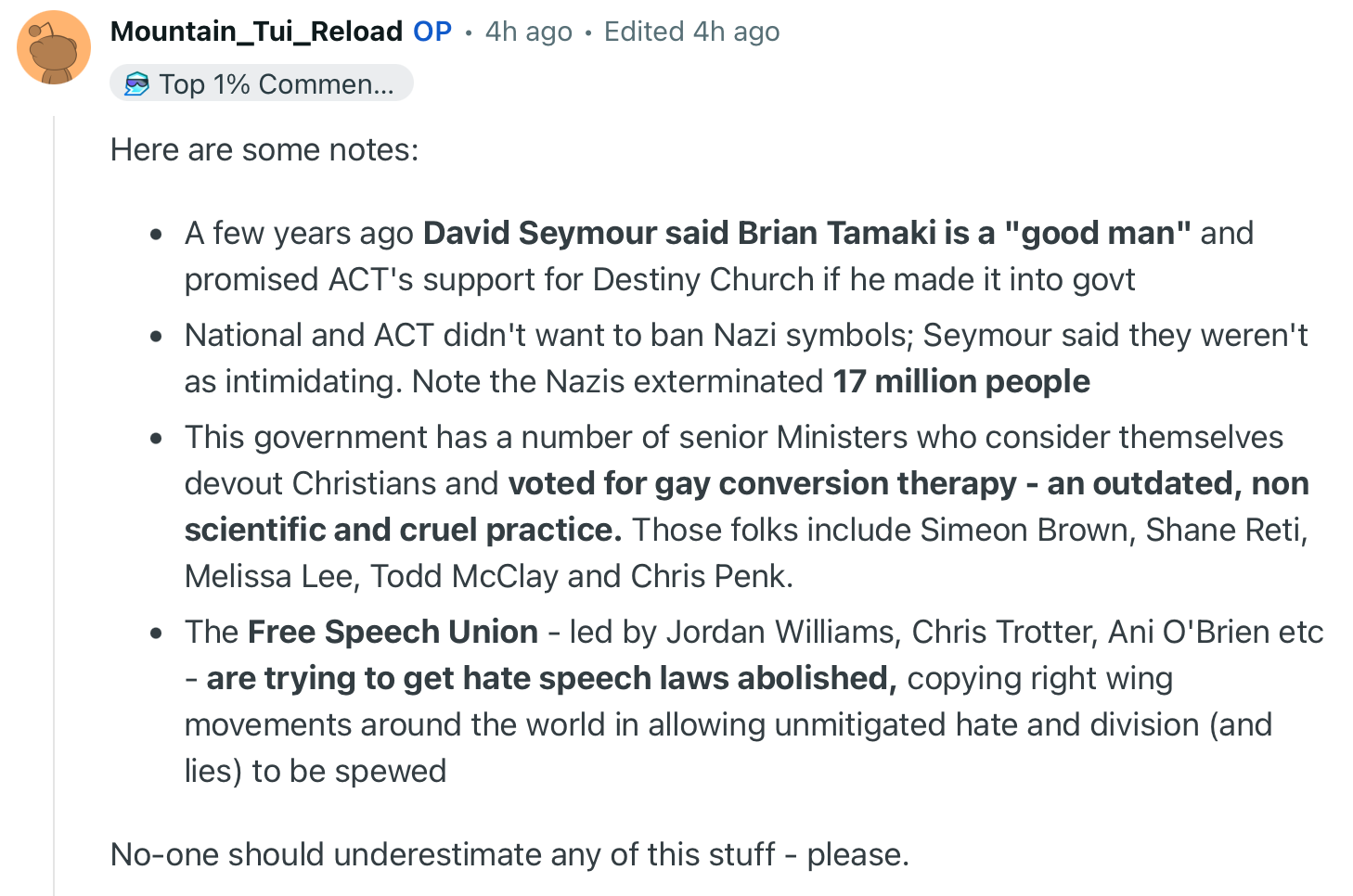 My opinion is, like the NACT-NZF government, everything Tamaki promotes is based on a pretext of goodness - for someone or other … even if the outcomes don’t eventuate - or they are the polar opposite.
