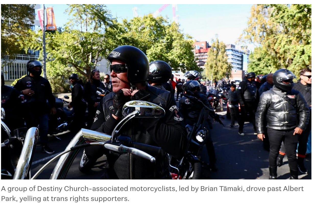 The individual who did it was part of a large group of motorcyclists - while Destiny Church members on motorbikes rallied nearby.