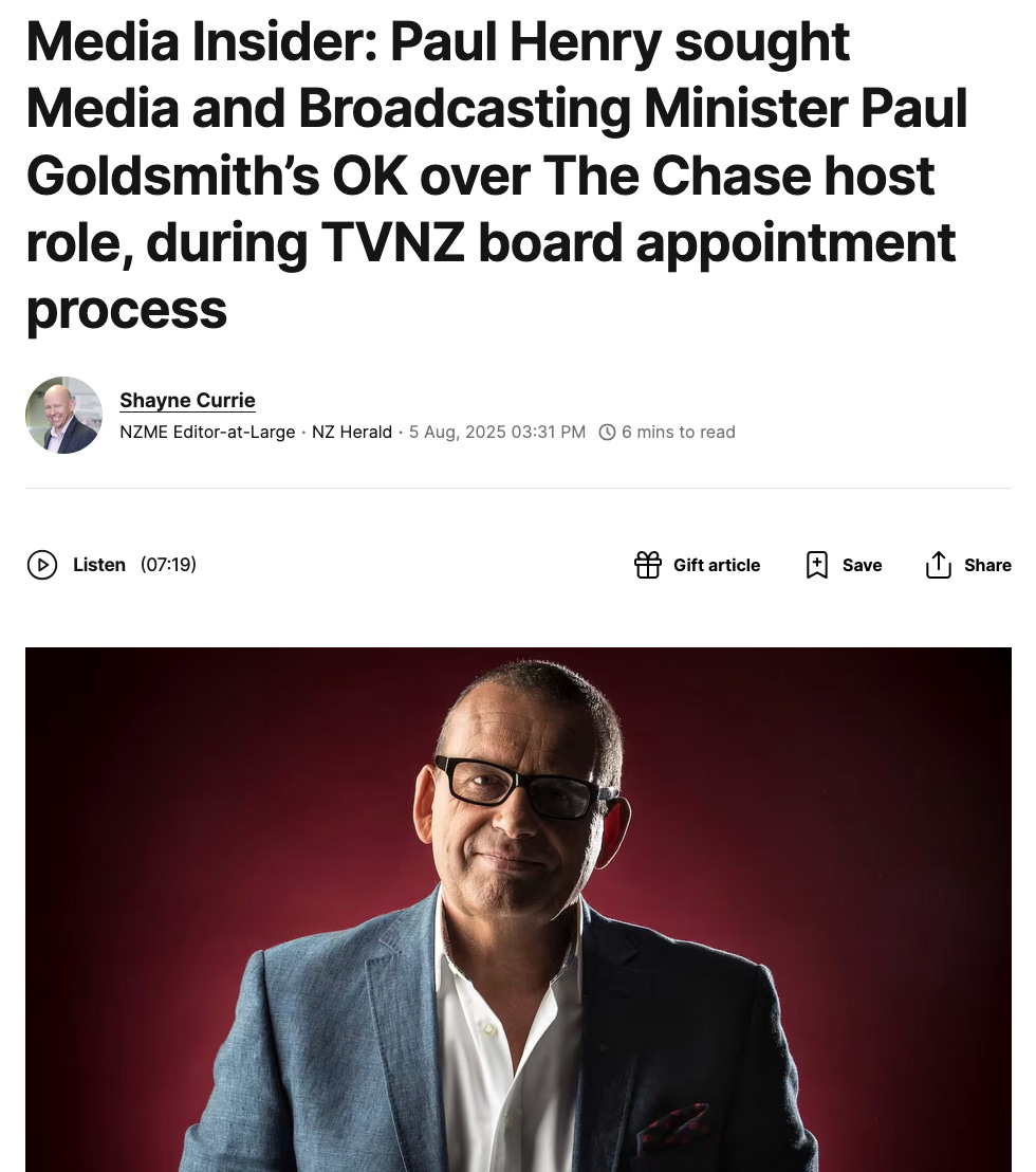 If I had to speculate, I’d guess it was Paul Henry, a National Party appointee to TVNZ’s Board.