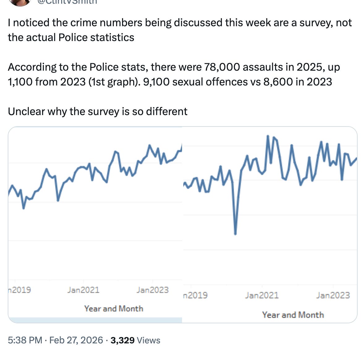 This text from Victor Consulting Director, Clint Smith reveals a sharp deterioration between National’s touted violent crime survey with police statistics.