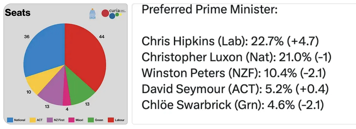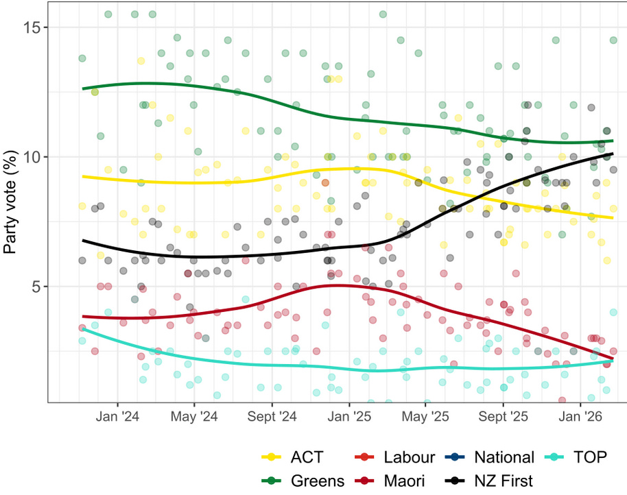 This poll shows why NZ First strategists have been trying to take votes from ACT. ACT is weak/stagnant and on the left, the Green Party could see more momentum.