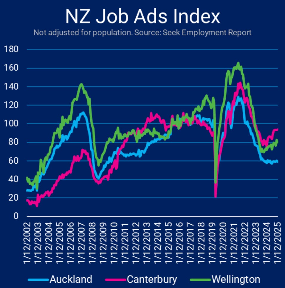 Employment forecasts at the time didn’t account for the ~140,000 Kiwi citizens who fled our shores under National. Despite this, unemployment levels broke 10-15 year records around the country.