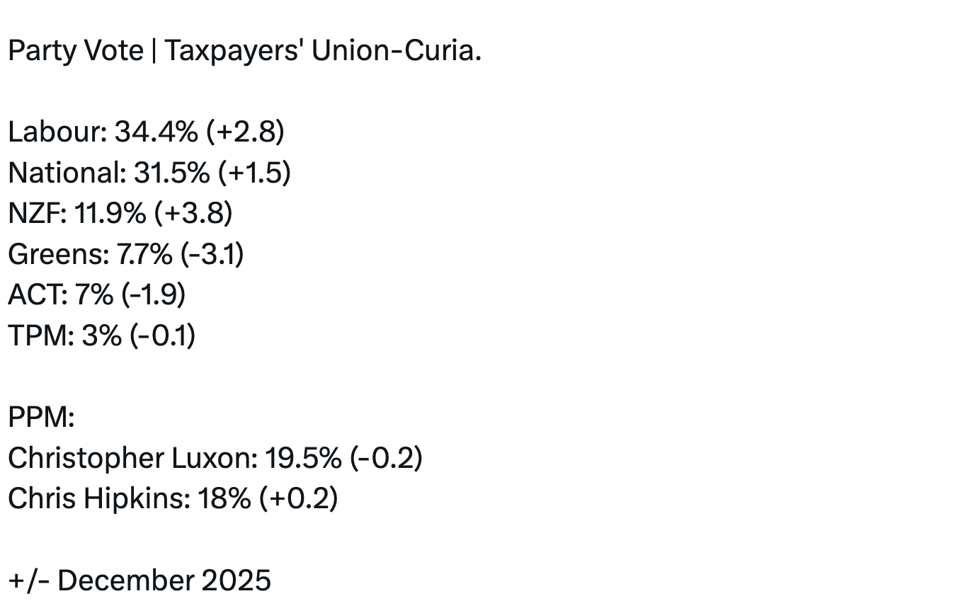 The latest poll from the non-professional standards abiding Curia Market Research shows Labour continues to forge ahead, gaining ground on National.