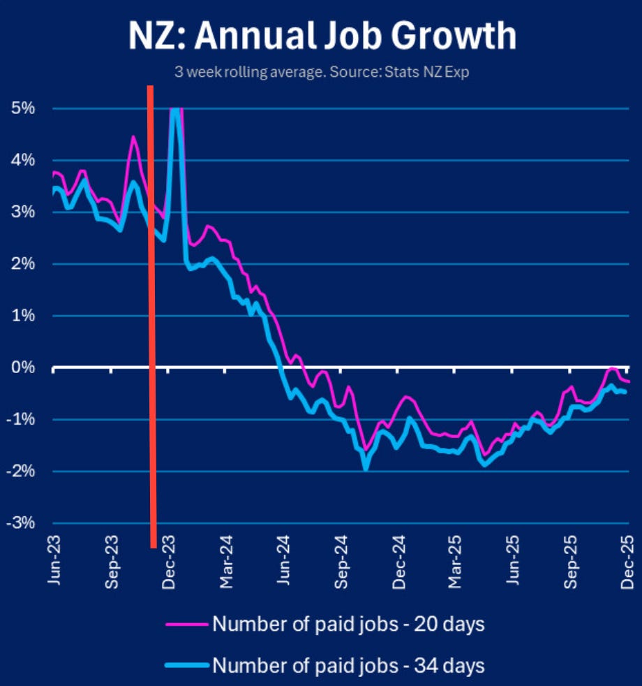 Despite all the talk of “green shoots” from National, ACT and affiliates, the graph below shows what happened after National won.