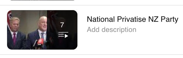 When I created a Youtube channel, I labelled the playlist for National: “National Privatize NZ Party”.