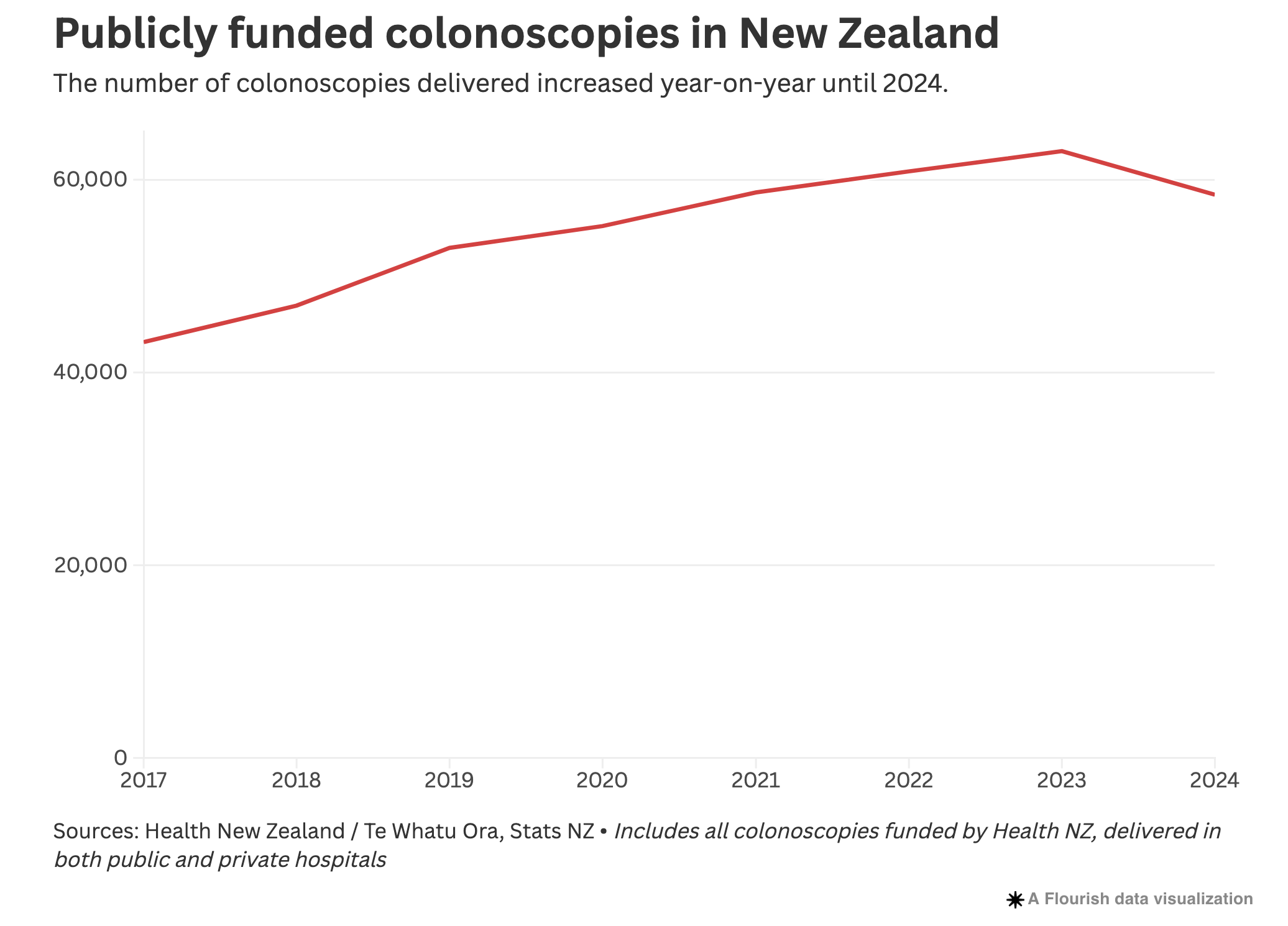 Wait times for urgent, non-urgent and surveillance colonoscopies all progressively worsened last year. Health NZ data shows the total number of publicly-funded colonoscopies dropped by more than 7 percent.