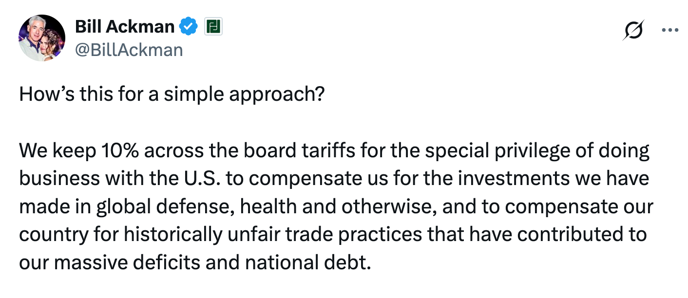 Billionaire fund manager Bill Ackman, a passionate Trump supporter, said tariffs could lead to an "economic nuclear winter." He also said businesses were fast losing confidence in Trump and asked the government to reconsider its decision.
