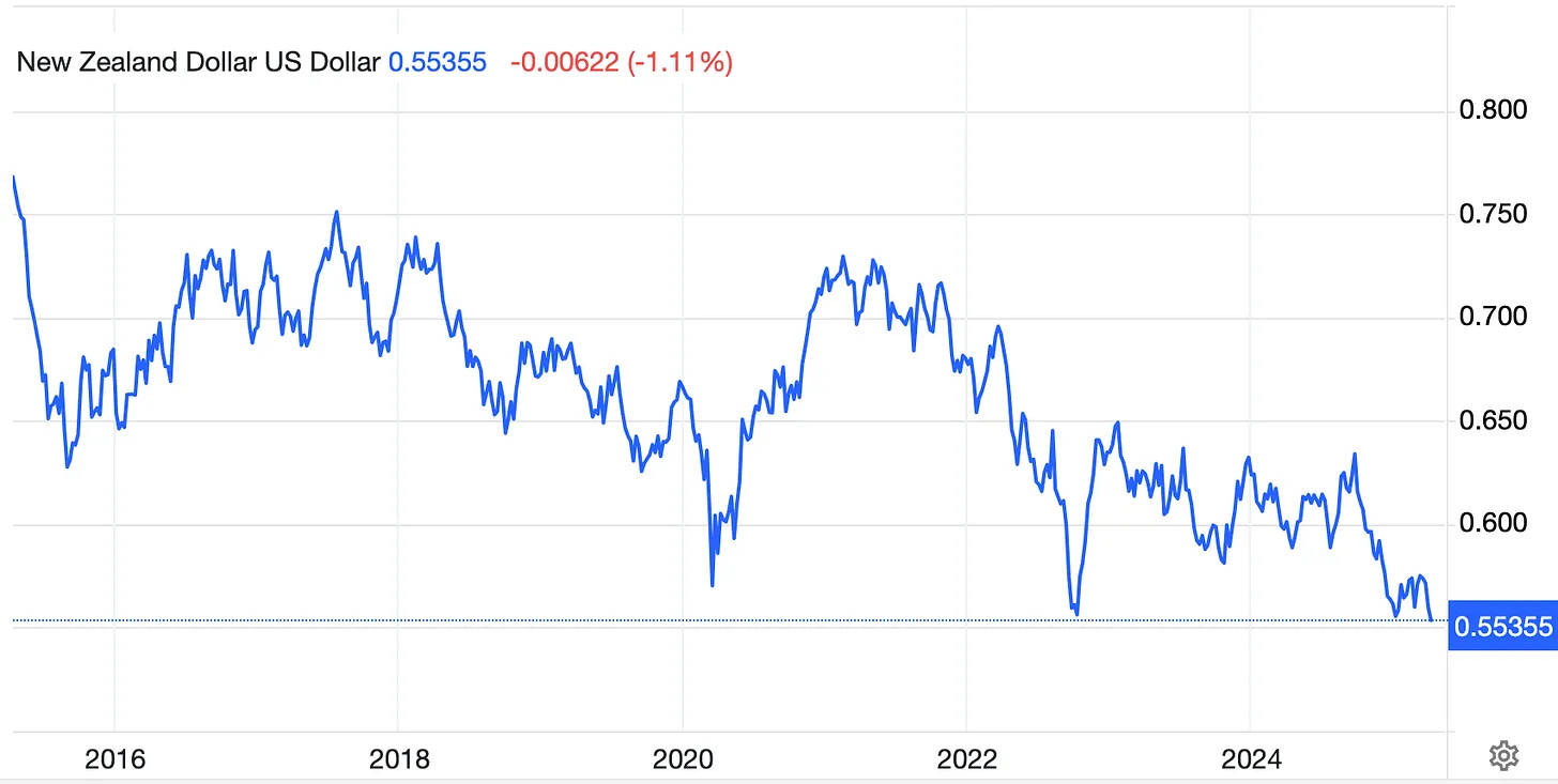 NZD Hits 10 Year Lows
