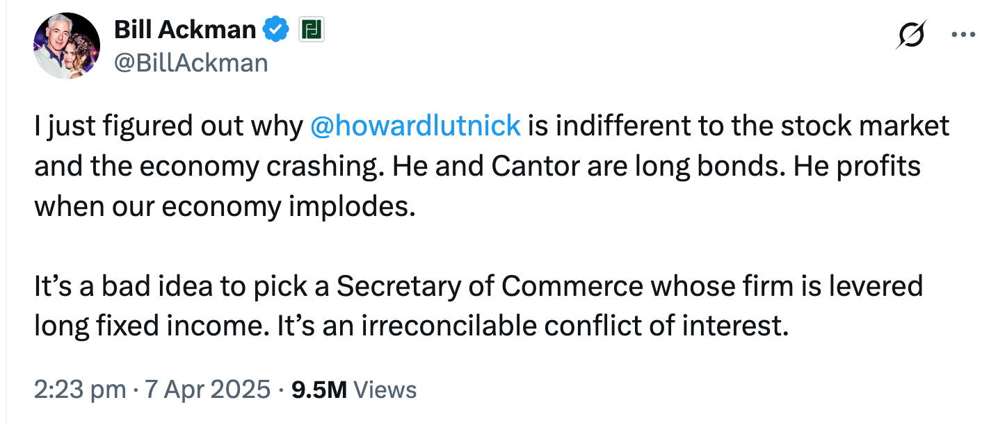 Ackman has also accused the Commerce Secretary of an “irreconcilable conflict of interest”