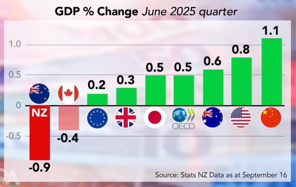 Canada, which has been hit hardest and most substantively due to its high dependence on the US economy, and the punitive scale of its tariffs, grew at more than double the rate NZ did and the average OECD rate is multiple times better.