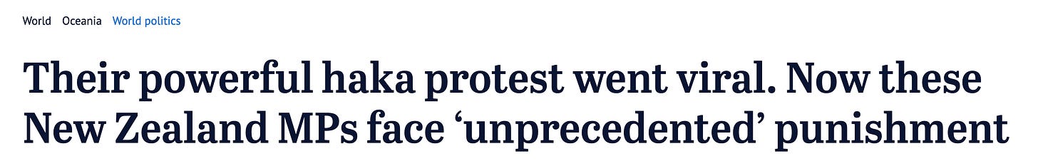 But as Australian media reported: Their powerful haka protest went viral. Now these New Zealand MPs face ‘unprecedented’ punishment.