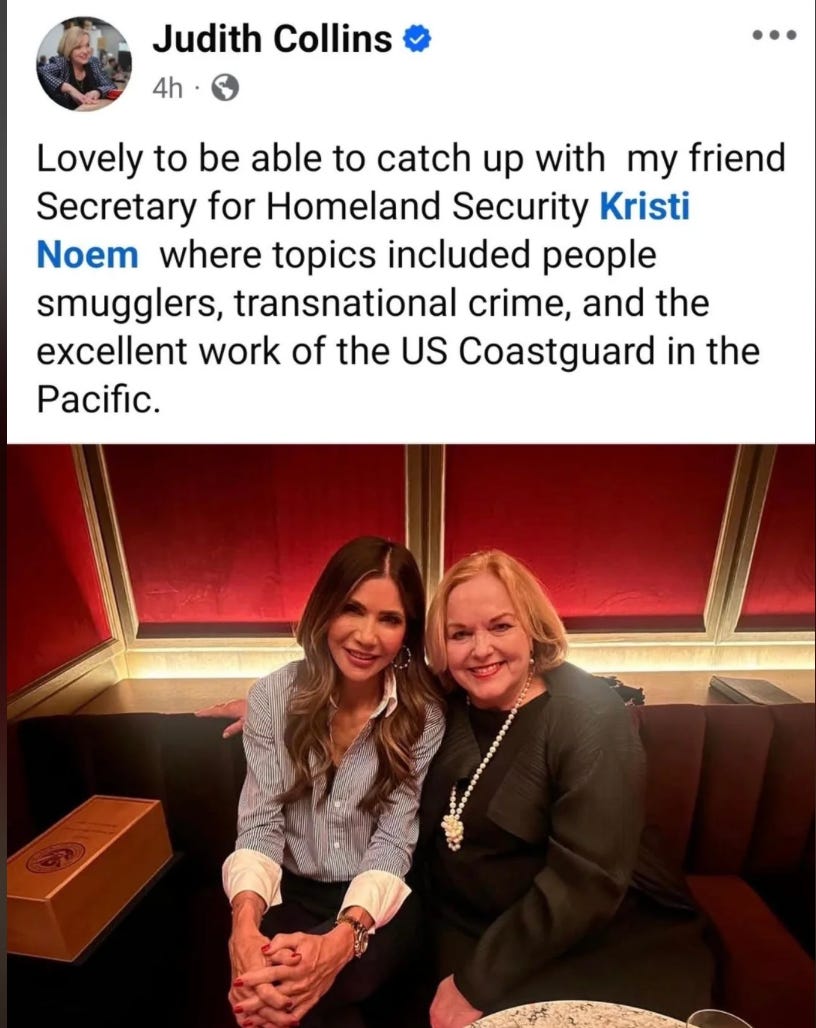 Last year, Judith Collins called Kristi Noem a “friend” too as she toured the USA, meeting with Trump’s Administration.