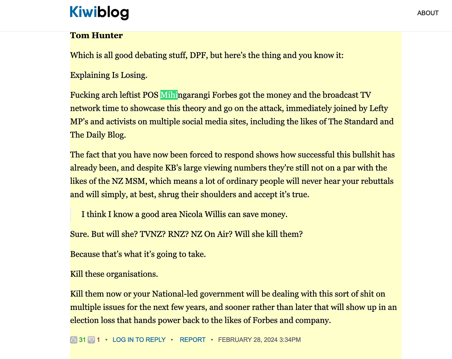 Yet they platform an arguable hate channel and persona that stands outside any and all regulatory bodies in NZ. It has to be one of the most vocal anti-Maori, pro-culture war platforms in NZ.