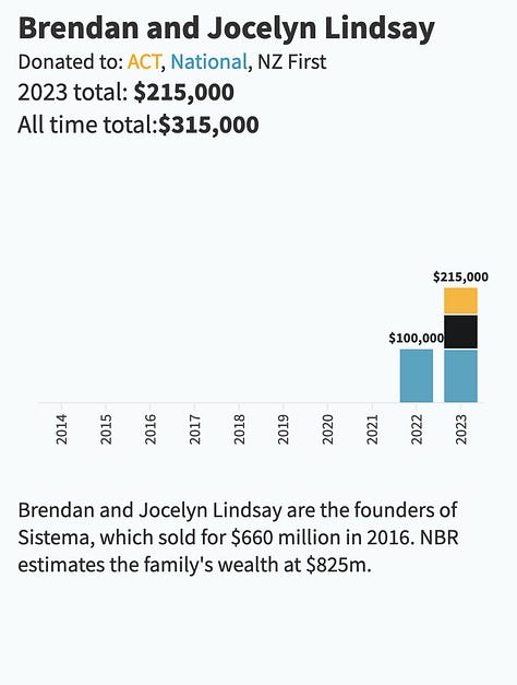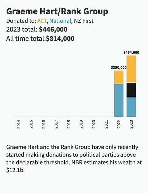 And while there were wealthy folks who donated to Labour and the Greens, it was incomparable compared to NZ's richest individuals and families donations: