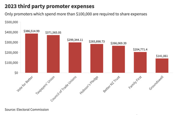 These right wing allies including Taxpayers Union, Groundswell, Hobsons Pledge & an unverified American group called "Vote Better NZ" all spent big during the official election period last year for the Coalition.