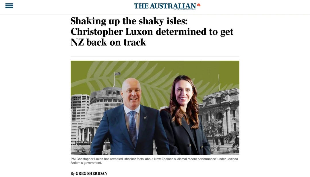Luxon presented as an "inspiring, a positive guy, with a familiar CEO manner of directness and can-do optimism." in Murdoch’s Australian papers