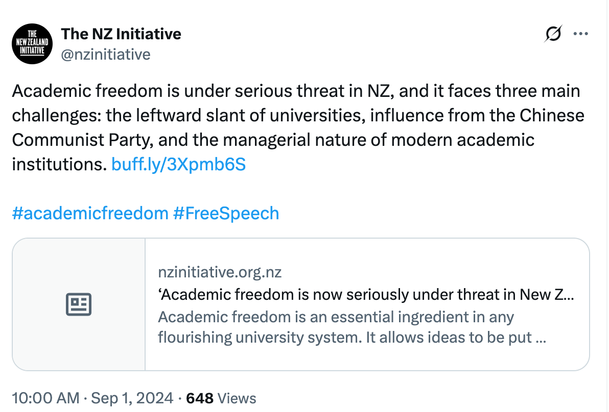 I found that surprising, given NZI’s role in promoting proposals for ‘freedom of speech’ in New Zealand universities. Freedom for those who agree with them, I thought.